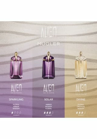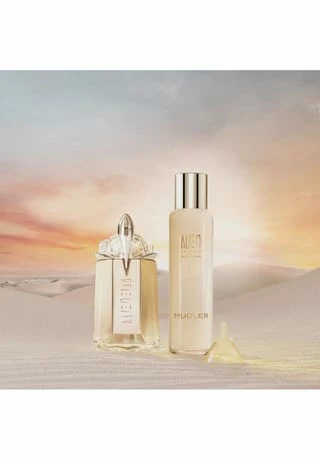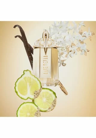 Lassen Sie sich von den Aromen von MUGLER Alien Goddess Eau de Parfum betören und erwecken Sie Ihre innere Sonnengöttin. Finden Sie das Licht in der Dunkelheit mit diesem hoffnungsvollen Damenduft voller Lebensfreude. Die orientalischen, fruchtigen, floralen und holzigen Duftnoten von Alien Goddess entfalten sich nacheinander und verschmelzen zu einem unvergesslichen Damenparfum: Strahlende Kopfnote: Zunächst tritt die italienische Bergamotte hervor. Wie die Sonnenstrahlen eines Sommertages verbreitet diese prickelnde Duftnote ihre positive Energie. Zauberhafte Herznote: Der Mittelpunkt der Komposition des MUGLER Alien Goddess Eau de Parfum ist die goldene Blüte Jasmin Grandiflorum. Sie steht für Sinnlichkeit und Weiblichkeit. Sinnliche Basisnote: Seinen mysteriösen Abschluss findet der Damenduft von MUGLER mit dem vollmundigen, weichen Duft von satter, süßer Vanille. Die Extravaganz dieses edlen Dufts aus exklusiven Inhaltsstoffen spiegelt auch der Flakon wieder. Mit seinen goldenen Elementen und metallisch glänzendener Lackierung steht er auf Ihrem Badezimmerregal wie ein besonderer Talisman, in dem sich das Sonnenlicht auf wunderschöne Weise spiegelt. Im Interesse der Nachhaltigkeit kann das MUGLER Alien Goddess Eau de Parfum einfach wieder aufgefüllt werden Anwendung: Um Alien Goddess aufzutragen, haben wir zwei Empfehlungen: Sie können das Parfum vor sich versprühen und durch die Duftwolke hindurchschreiten. So kann sich der Duft behutsam auf Ihrer Haut, Ihren Haaren und Ihrer Kleidung niederlassen. Für einen intensiveren Duft können Sie Alien Goddess außerdem direkt auf Ihre Pulspunkte auftragen. Dazu gehören die Innenseiten der Handgelenke, der Hals, Ellenbogen und die Kniekehlen. Diese beiden Schritte können Sie wiederholen, wann immer Ihnen danach ist.