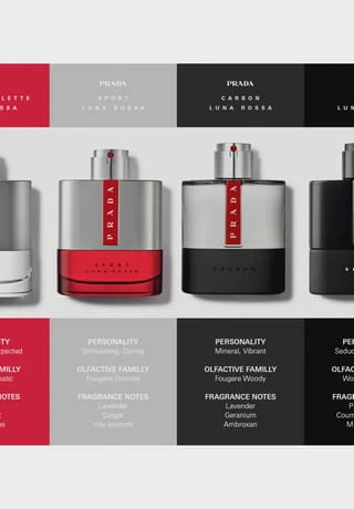 Mit Luna Rossa Black erschließt Prada ein neues Luna Rossa Territorium: urbaner Lifestyle – cool, selbstbewusst, modisch, luxuriös! Es geht darum, den Einfluss des eigenen Umfelds bewusst wahrzunehmen und auf sich wirken zu lassen. Amber, Bergamotte und Patschuli verschmelzen zu einem verführerisch holzigen Eau de Parfum voller maskuliner Energie, das dem Träger Eleganz in jeder Lebenslage verleiht. Der Flakon greift in gewohnter Weise den ikonischen Streifen der Prada Accessoires auf, der passend für Luna Rossa Black in Schwarz erscheint.