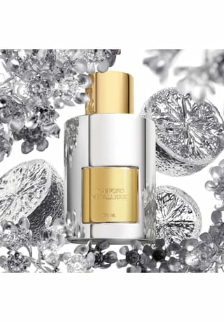 Exquisit. Furchtlos. Eigensinnig Tom Fords Métallique fasziniert seine Bewunderer mit der übersinnlichen Kraft entschlossener Weiblichkeit – stark, leuchtend und in voller Blüte. Eine Rüstung aus hypnotisierenden Aldehyden umhüllt den nachhallenden Kern aus sinnlichen weißen Blüten. Wie ein funkelndes Kleid eröffnet die metallische Hülle von Aldehydenden den Duft und schmiegt sich um Sie wie eine zweite Haut. Die frische Bergamotte und das pinke Pfefferkorn verstärkt die Unersättlichkeit des ersten Eindrucks. Unter seinem kühlen Accessoire wird das florale Herz durch die Gegenüberstellung von zarten Weißdornblüten mit dem narkotisierenden Nektar des Heliotrops verstärkt. Eine Aura von Ambrettesamen verleiht Wärme, mit holzigen Einflüssen des Perubalsams. Der weiche Duft von Vanille und eine cremige Sandelholzschicht, ummantelt als süchtig machendes Tom Ford Accessoire, das man nie mehr vergisst.